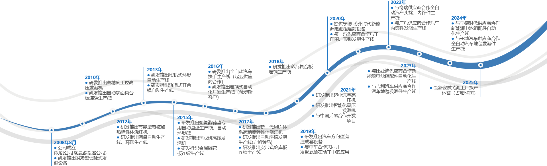 公司主要研發(fā)生產(chǎn)聚氨酯高壓發(fā)泡機(jī)、低壓發(fā)泡機(jī)、密封條澆注機(jī)、彈性體澆注機(jī)等以及配套的生產(chǎn)線。設(shè)備應(yīng)用領(lǐng)域:汽車交通,家居家具,建筑,體育醫(yī)療,工礦領(lǐng)域等行業(yè)。