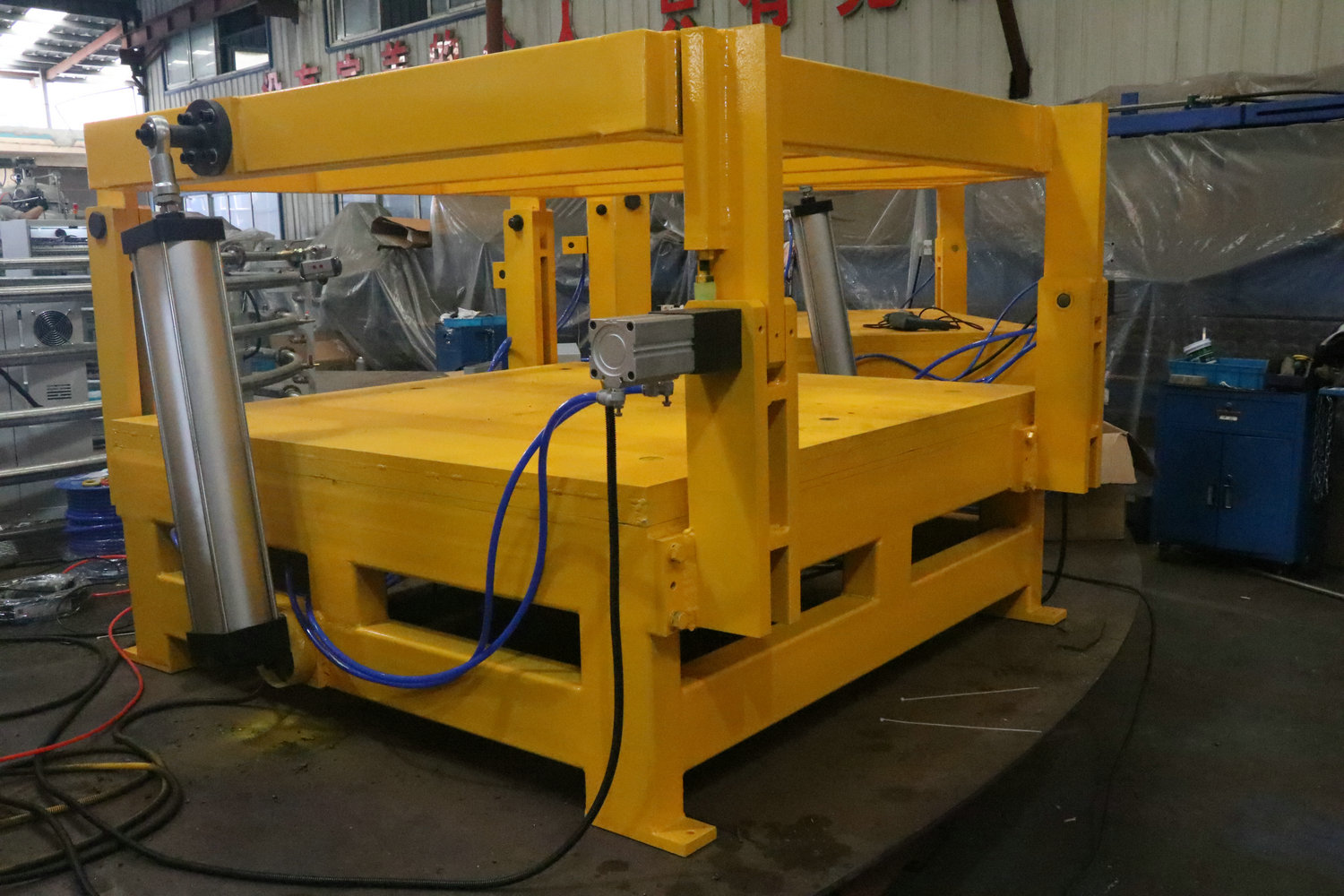 每個(gè)模架為獨(dú)立的控制系統(tǒng),單獨(dú)的PLC控制,模架多為固定,搭配聚氨酯發(fā)泡機(jī)使用,采用機(jī)頭固定澆注或機(jī)械臂澆注的形式進(jìn)行生產(chǎn)。